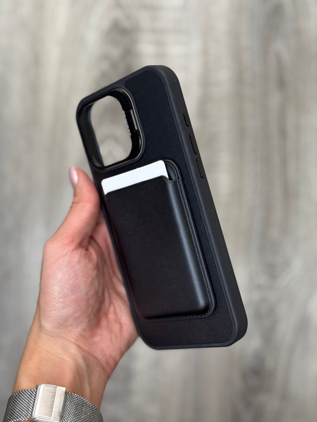 Integrated wallet slot – Holds a card securely in the back compartment, perfect for carrying essentials without a bulky wallet.